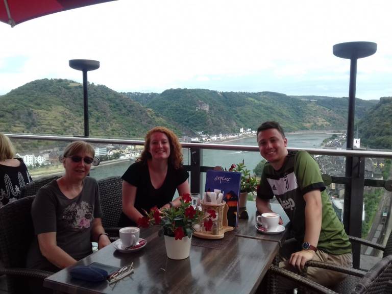 Heading further up the Rhein, we got an excellent tour commentary from Evi, describing the history of the Loreley rock, the Mäuseturm and many more landmarks. Before turning around to head back to Ober-Ramstadt, we enjoyed some coffee and tea at a castle-turned-hotel. The caffeine was necessary for some of us (Becca) who kept falling asleep in the car.