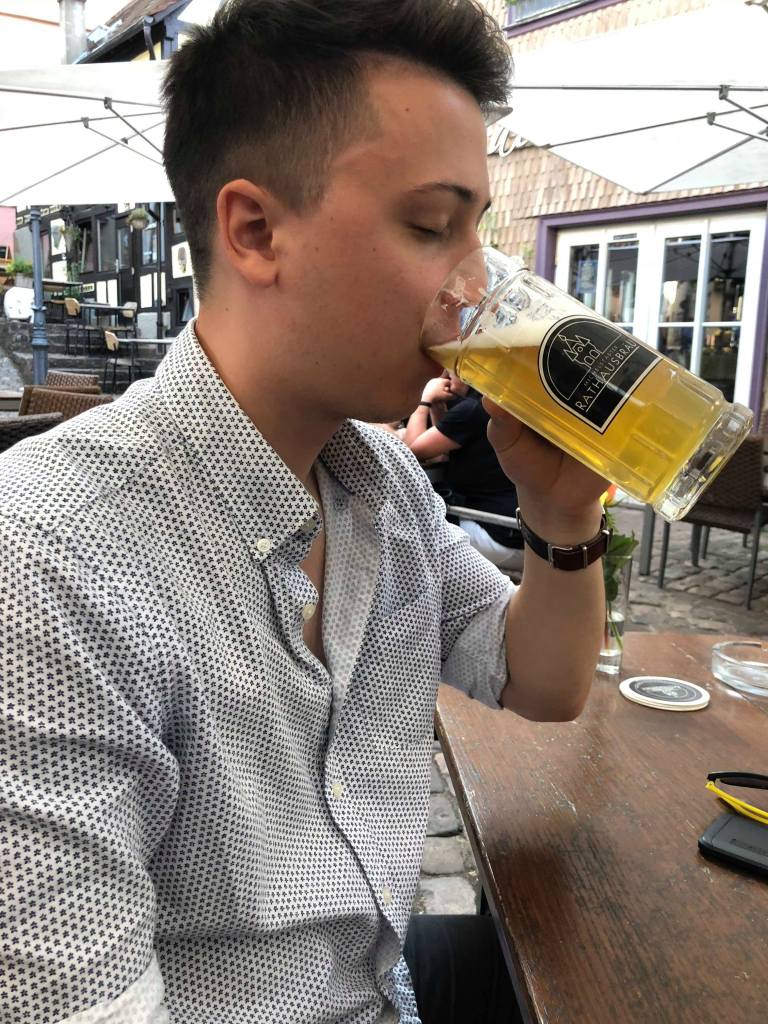 After the unintentionally long nap we headed to Michelstadt and wandered around before settling in at a biergarten called Michelstädter Rathausbräu. Ryan got a meat sampler plate with some unbelievable chicken and Becca got a couscous bowl with various veggies and mango! We also shared a summer beer which was really tasty.