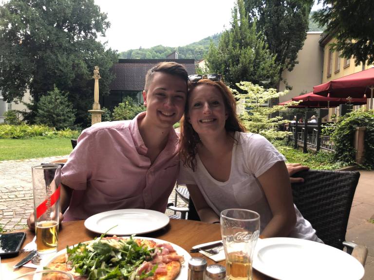 We spent a few hours at the castle before heading into the town for lunch. We found a small museum cafe by a fountain that served excellent pizza and enjoyed each other’s company as well as the good food! Right as we were finishing our food a few rain drops began to fall and all of the people surrounding us began to scatter. We quickly finished our food and the rain cleared up before we headed out to explore the main street in Heidelberg.