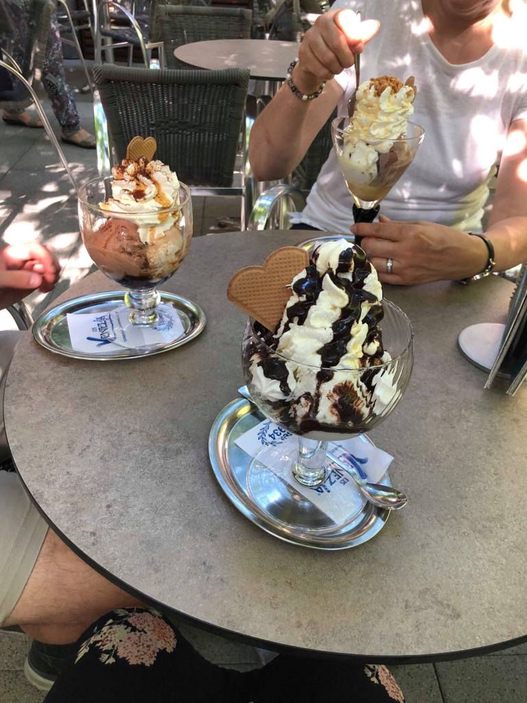 After this little tour, we drove to the main square of Darmstadt and wandered around until we found an ice cream shop that had a beautiful back patio with overhanging vines providing the perfect amount of shade cover (it was a really hot day). We both tried to decipher the over 150 options for ice-cream sundaes, affogatos and crazy specials we had never seen before. After 10 minutes we were both confident in our choices, believing them to be small portions, only to have giant bowls of ice cream show up in front of us! Never in our lives have we had such massive amounts of ice cream, but we did finish all of it!