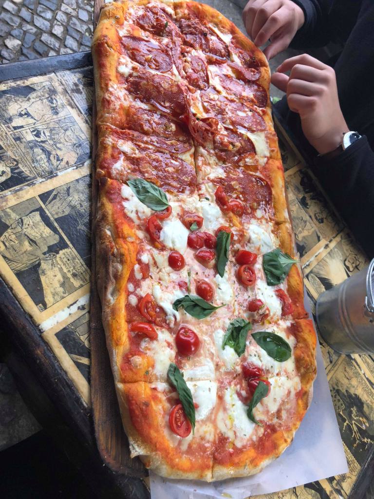That night we had our craziest meal of the trip yet (according to Ryan, Becca says it is a toss up between that and the Bao Burgers). Looking to try venturing to a new part of town, we found a small Italian restaurant that was a good distance from our apartment. Ignorantly, we decided to go for a whole pizza, even after the man taking our order looked confused at our request. A few minutes later we understood his confusion, as he brought out a pizza the size of a small child. Never ones to pass up a challenge, we set out to make sure no pizza was left behind. After a long, messy meal we walked away with our heads held high, victorious over this insane meal.