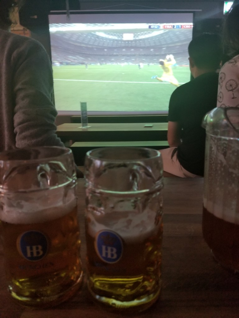 Taking refuge from the storm outside, we settled into the hostel bar to watch the World Cup Final! We arrived early (at Ryan’s behest) and got some great seats near the front of the room. It was a great game, and the bar quickly filled up as more people wanted to watch. We (and the rest of the room) were rooting for Croatia, but *SPOILER ALERT* in the end it was France who came out victorious.