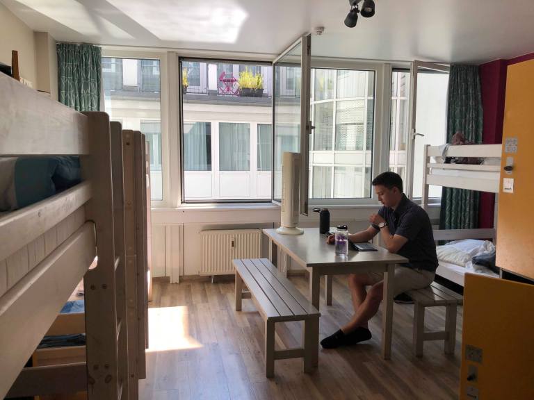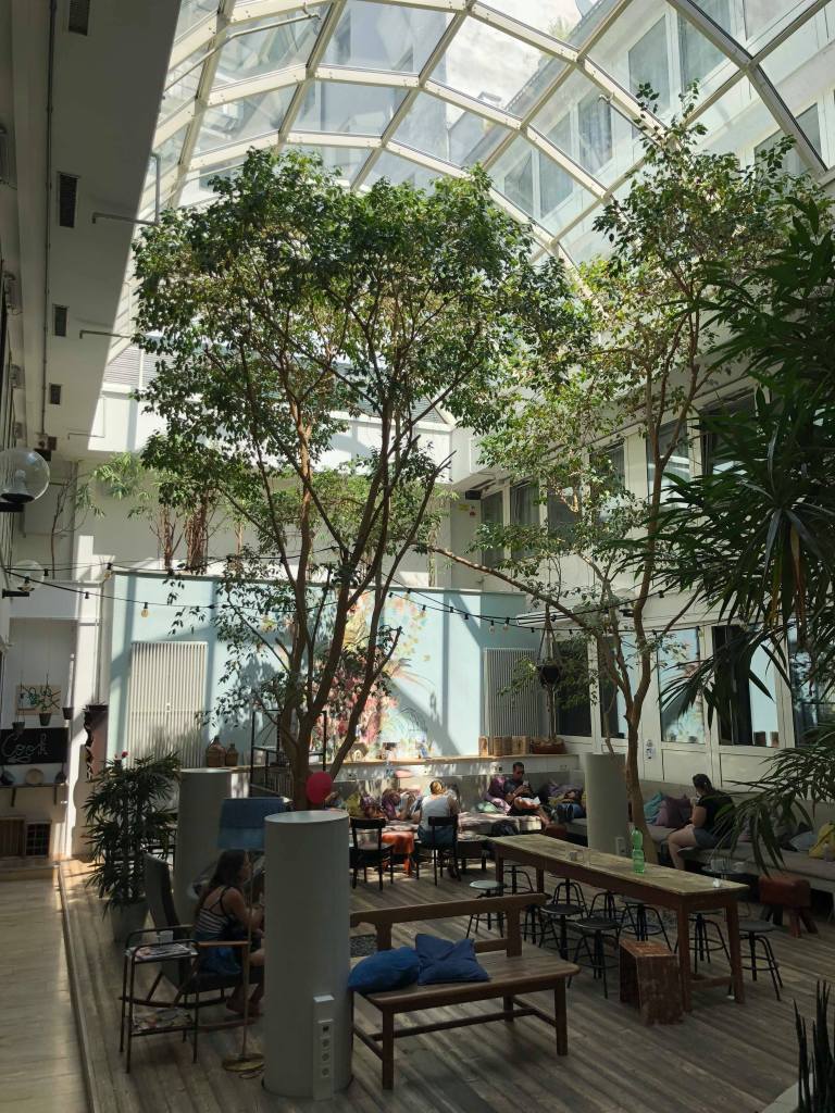 Our hostel in Munich is a serious highlight of the trip! It is nice to be around so many young people, and the hostel is really nice. We have huge windows in our room, it is cleaned every day, has its own bathroom, and the common space is a sort of greenhouse-atrium combo with trees inside! It is a really nice place to hang out.