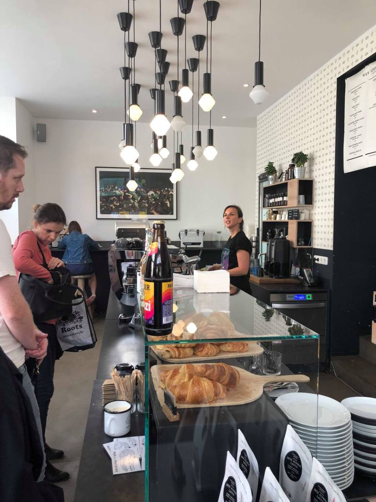 This morning we woke up early and headed out for a coffee shop we’d found online that hadn’t been open the previous day, Man Versus Machine. The coffee was great and we got some yummy marzipan croissants. After breakfast we went grocery shopping because we realized that the hostel had a really nice kitchen. We came back and ate lunch in the common room and then read for a few hours on the couches.