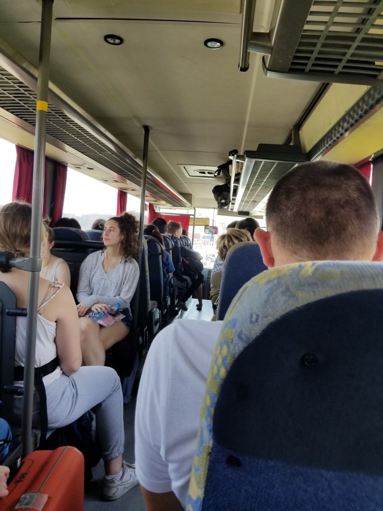 There were three randomly branded and colored busses waiting for us. While we were very confused and not totally sure that we should get on random busses at a strange train station in the Croatian countryside, we realized that three busses would not fit all of the people from the train so we quickly loaded our things and got on the bus.