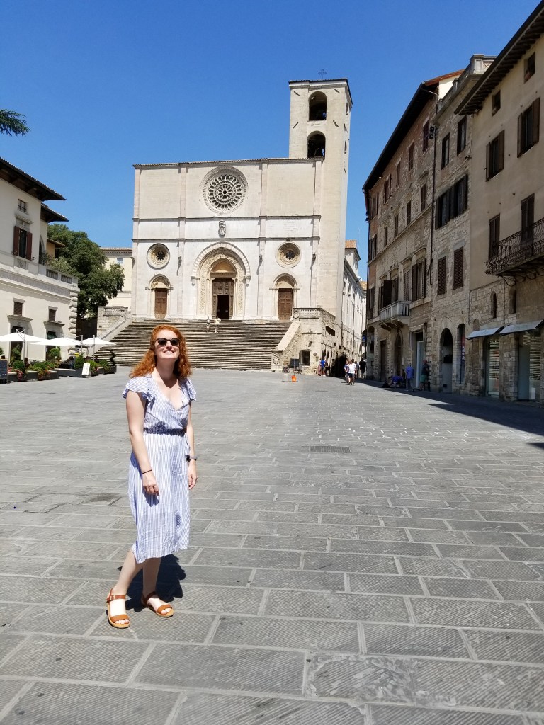 We decided to explore the nearest town, Todi, so we piled in the van a little before lunch time and Greg wound around the tiny streets and managed to park our huge van in a tiny spot on a steep incline – nice work Greg!! We explored the main square and popped into a church that was holding Sunday mass before heading to lunch.
