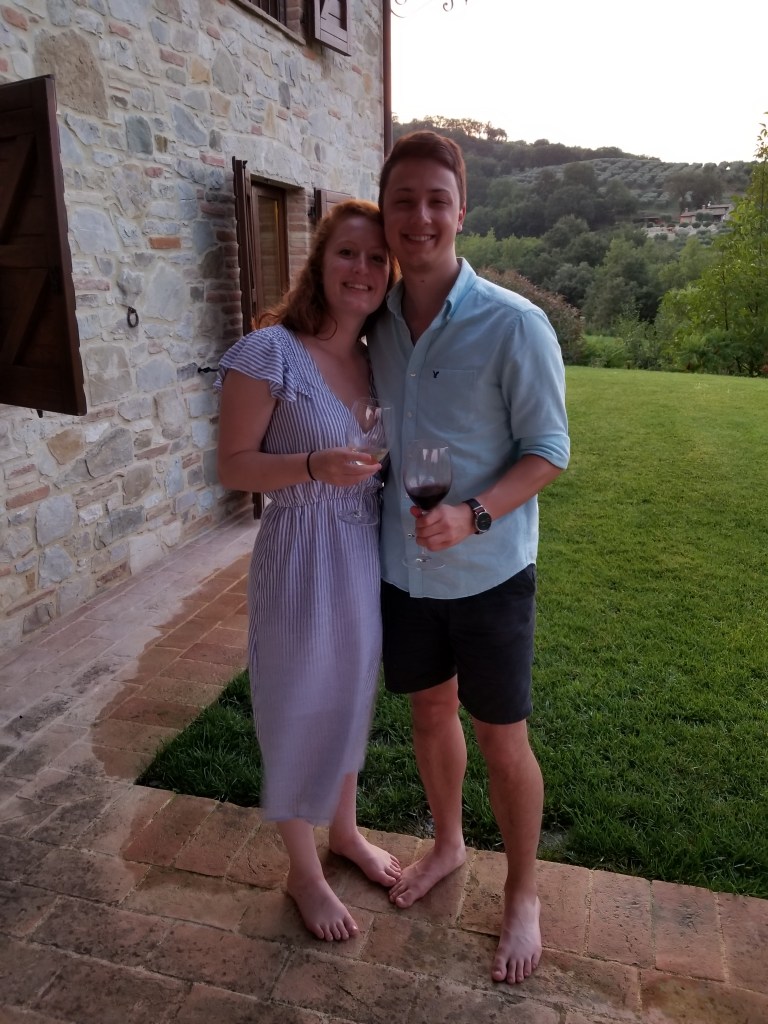 We quickly found Ryan’s parents, Liz and Kevin, and spent the time waiting for Becca’s parents Greg and Laurie by catching up with them and hearing about their adventures in Belgium, the Netherlands, and Germany prior to their arrival in Italy. We all finally met up, got our 9 seater Mercedes van, and started the 2 hour drive to our villa near Todi.