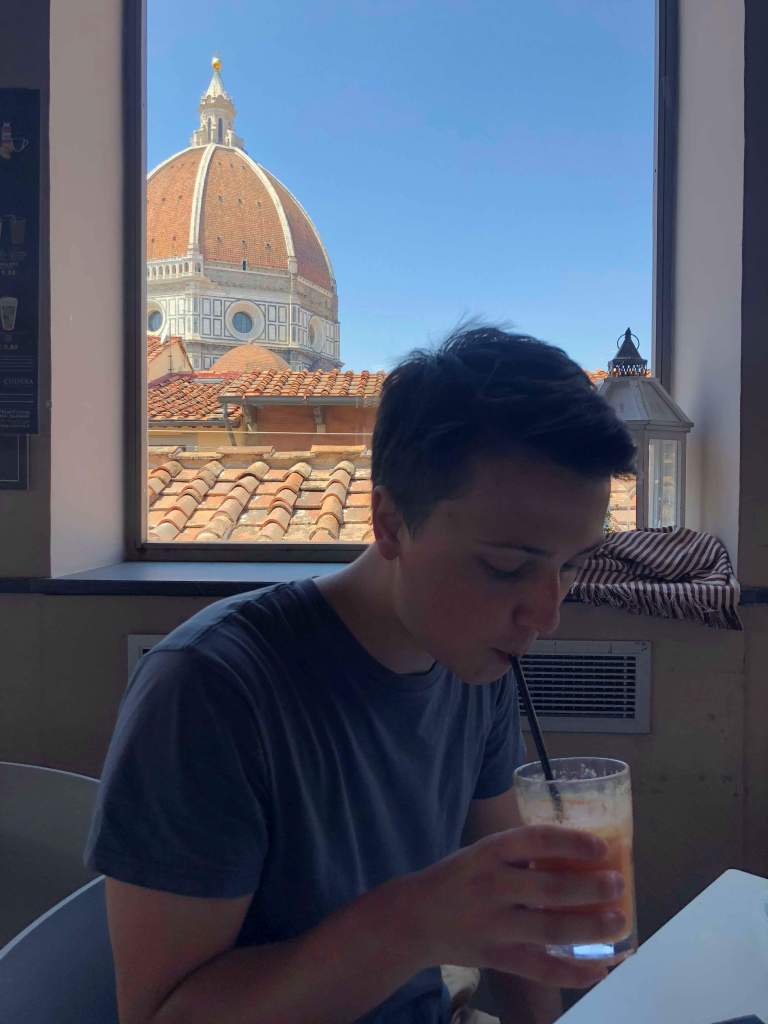 The next morning Becca woke up at 5:30 and couldn’t get back to sleep, so she sat out on the amazing patio and watched the sun rise and listened to the distant bells of the Duomo. Such a lovely way to wake up. Once Ryan was awake, we got ready to head to the Uffizi Gallery for the day.