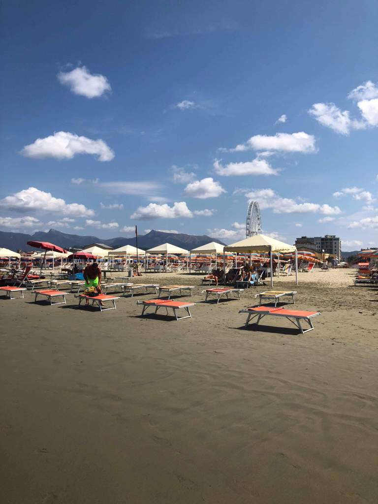 Heading to the beach was pretty easy, there was a train that went directly there and only had a few stops! We realized halfway through that we were actually on the commuter train – as we were surrounded by street vendors heading to the beach, rather than tourists. When we got there we made our way to the water, trying to find some public beaches we’d read about online. The beach is predominantly private beach clubs which rent chairs by the day, but they are required by law to have a stretch of public beach available, so we opted for that. We had heard they were small but didn’t want to pay the ~€20 for an umbrella and chairs at the private sections of the beach.