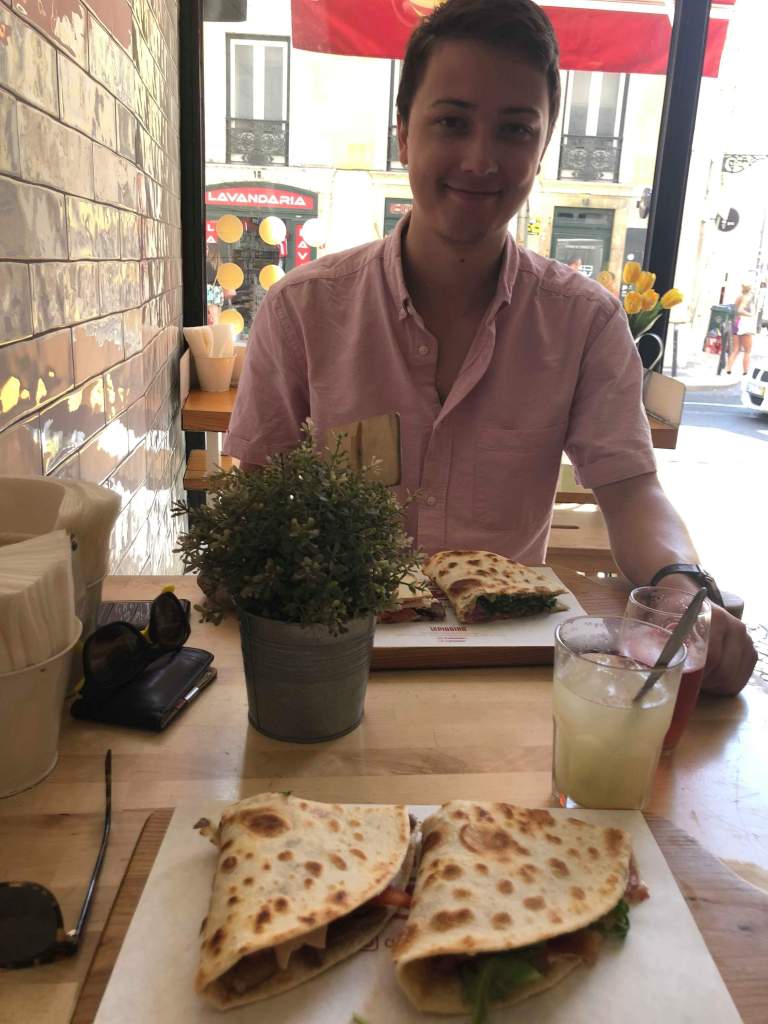 We began looking for other options when Ryan found a small flatbread place called Piadina which was not too far away. After setting out for it, we realized that it wasn’t going to be an easy stroll – as it was directly uphill! We persisted and made it to the restaurant, happy to be out of the sun again. The food was really good and very filling – definitely worth the hike to get it.