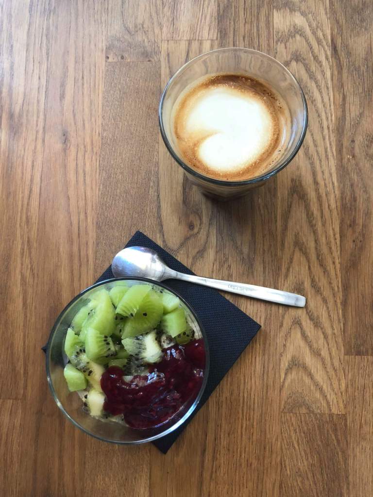 After the market we retraced our steps to a nice looking coffee shop we’d seen earlier called Copenhagen Coffee Lab. It was tucked away on a side road, but turned out to be a rather large coffee shop! Ryan decided to get a cortado and Becca, wanting a mid-morning snack, got some overnight oats. They were both really good, and we relaxed for a bit, happy to not be walking up and down hills for a few minutes.